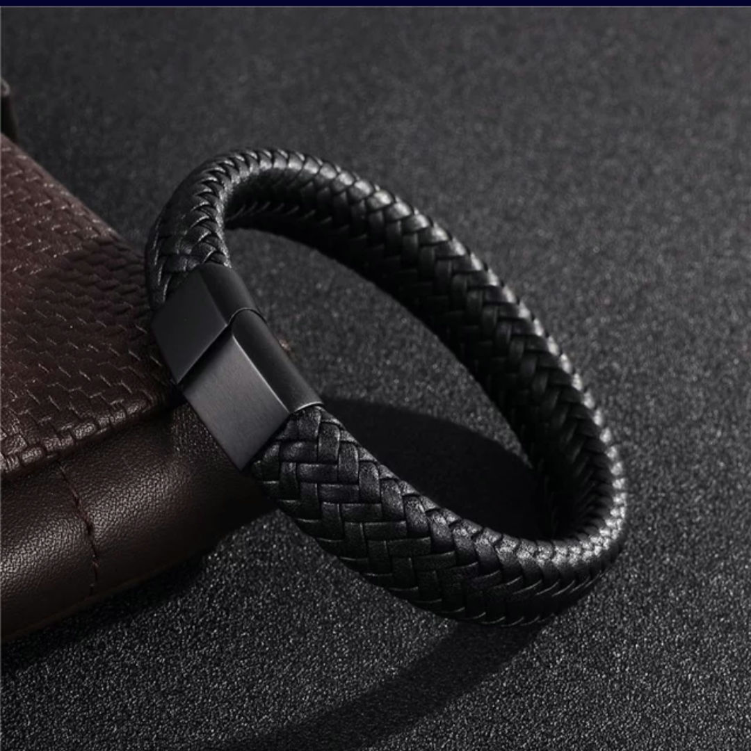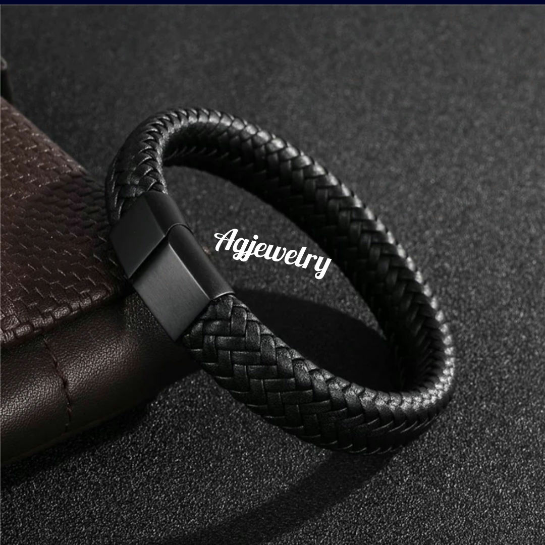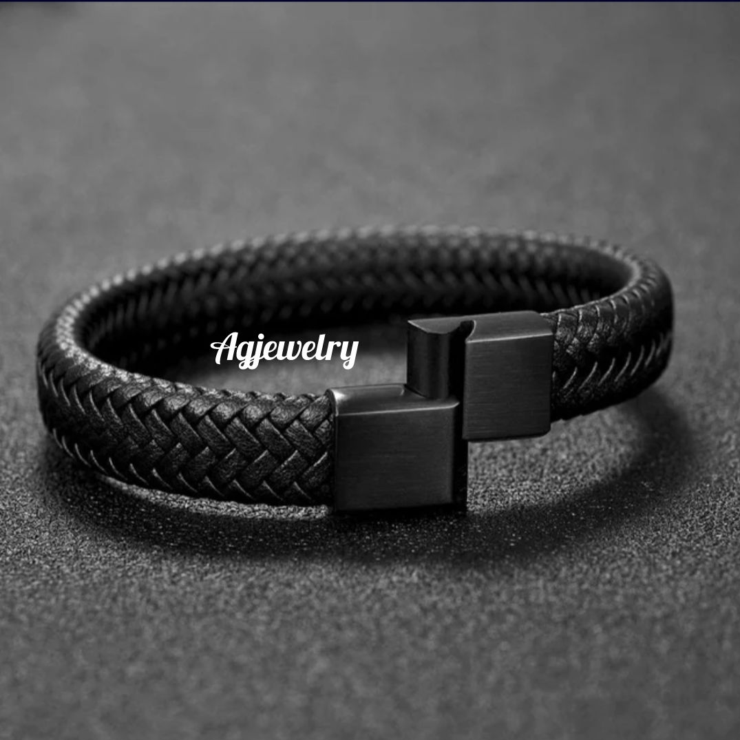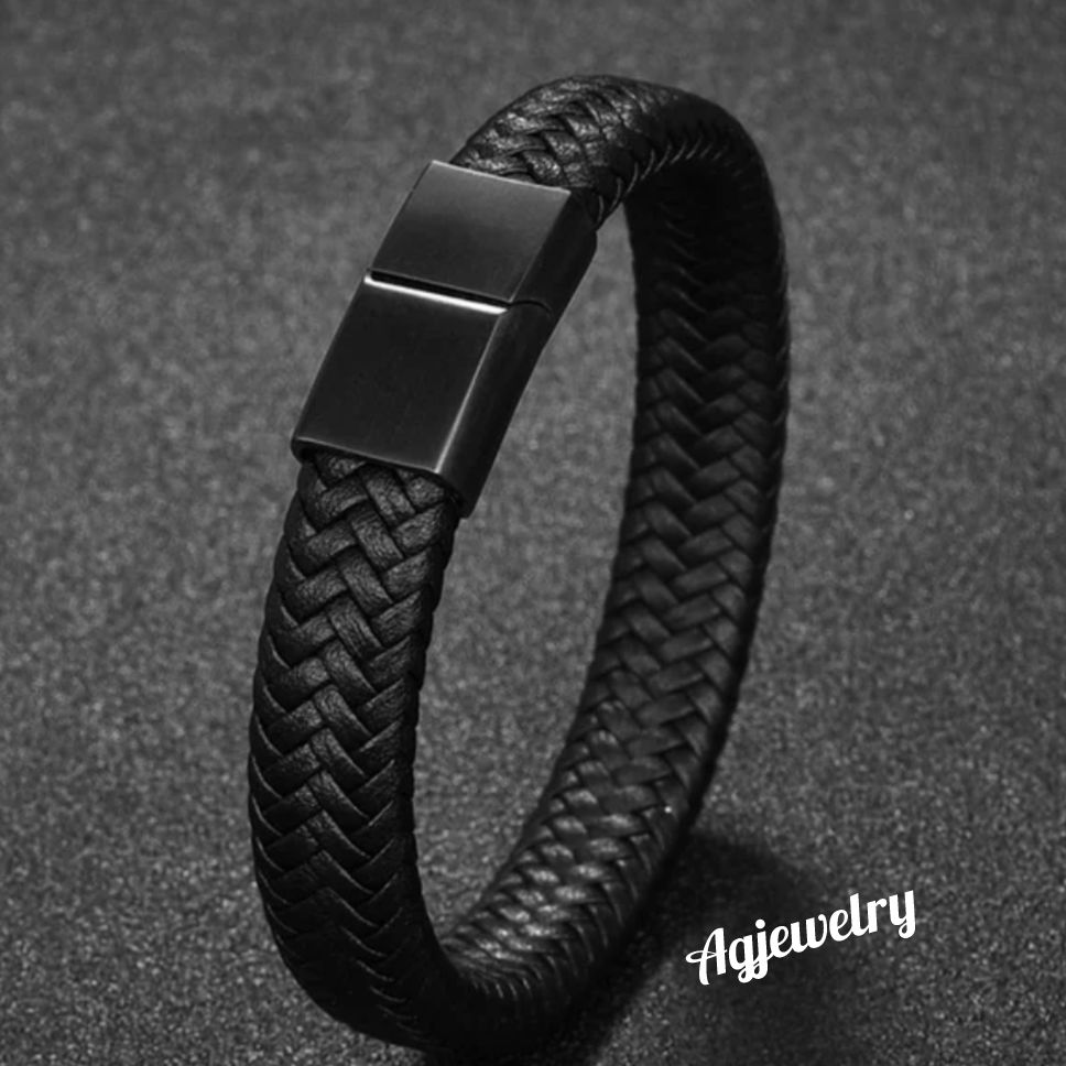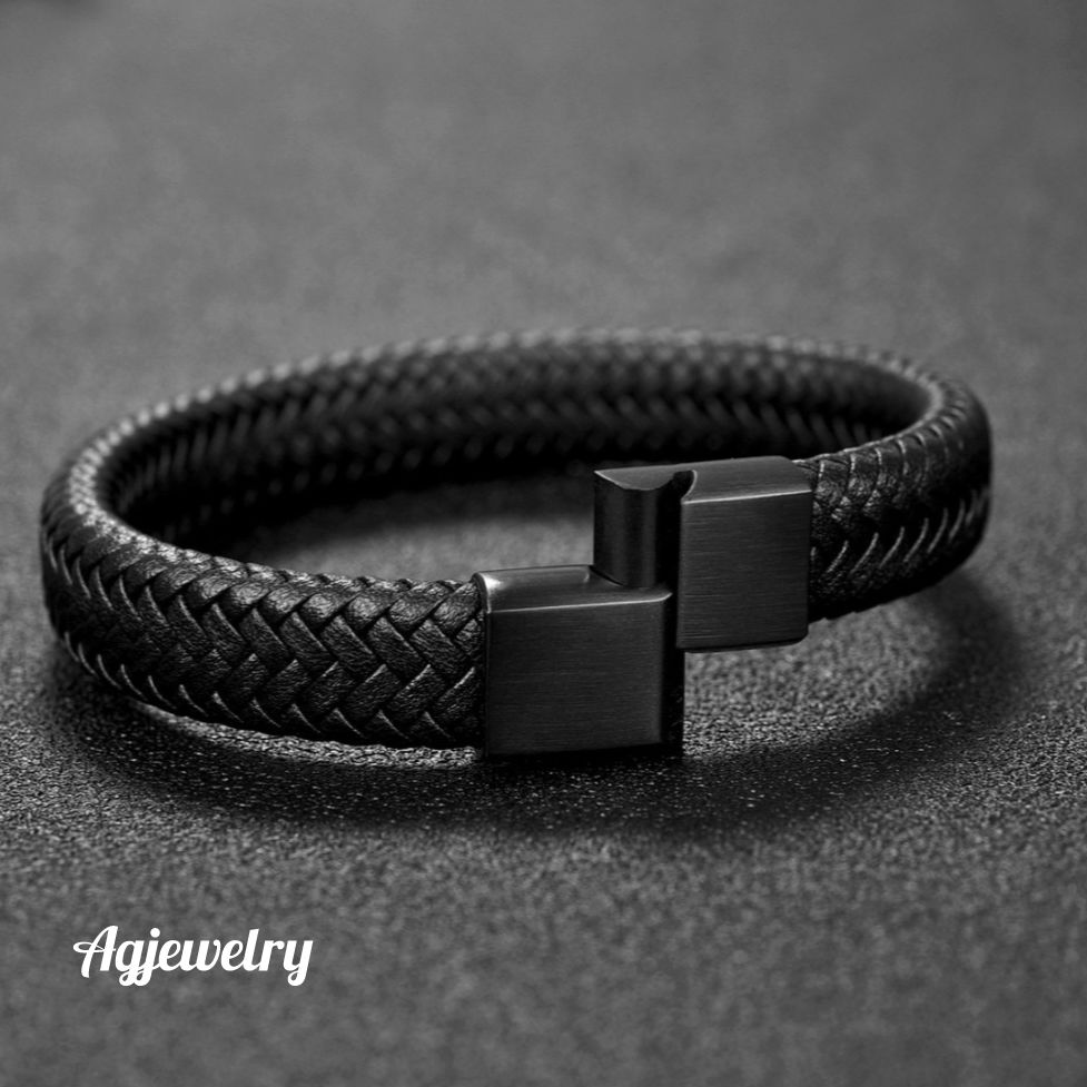 Men’s high quality and classy braided leather bracelet with engravable steel magnetic clasp. Available in black and silver clasps. Leather bracelets are one of the most durable and coolest type of men bracelets as they go with virtually any outfit. Agjewelry offers high quality braided leather at affordable prices.