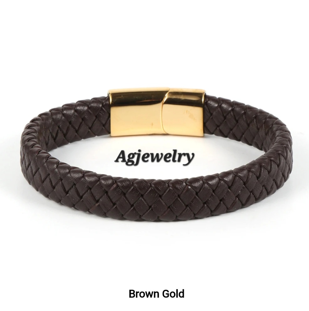 Mens’ fashionable braided leather bracelet with steel magnetic clasp comes in 4 different colors and two different styles. Leather bracelets are one of the most durable and coolest type of men bracelets as they go with virtually any outfit. Agjewelry offers high quality braided leather at affordable prices.
