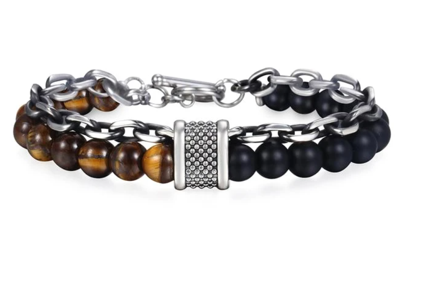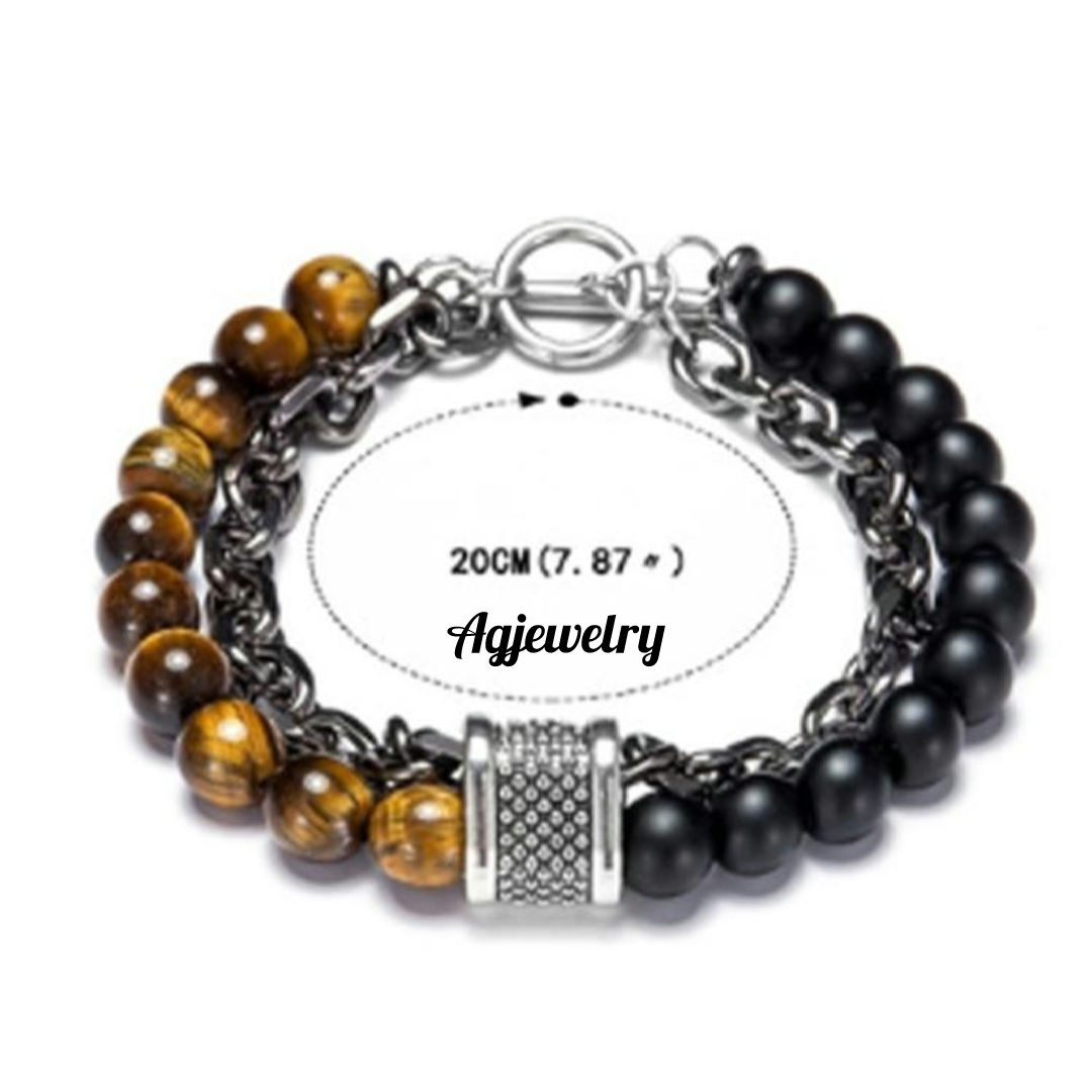 These beautifully made men double layered bracelets are available in 5 different styles. The high quality natural beads compliments the stainless steel chain links perfectly. These are one of my favourite as it’s simple enough to be worn day to day yet nice enough for more special events.