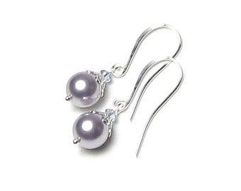 Composed of Swarovski 10 mm crystal lavender pearls accented with tiny swarovski crystal and silver finding caps, which are then connected to a pair of oversize silver french ear wires. Pretty enough for a big event, yet simple enough to be worn day to day.